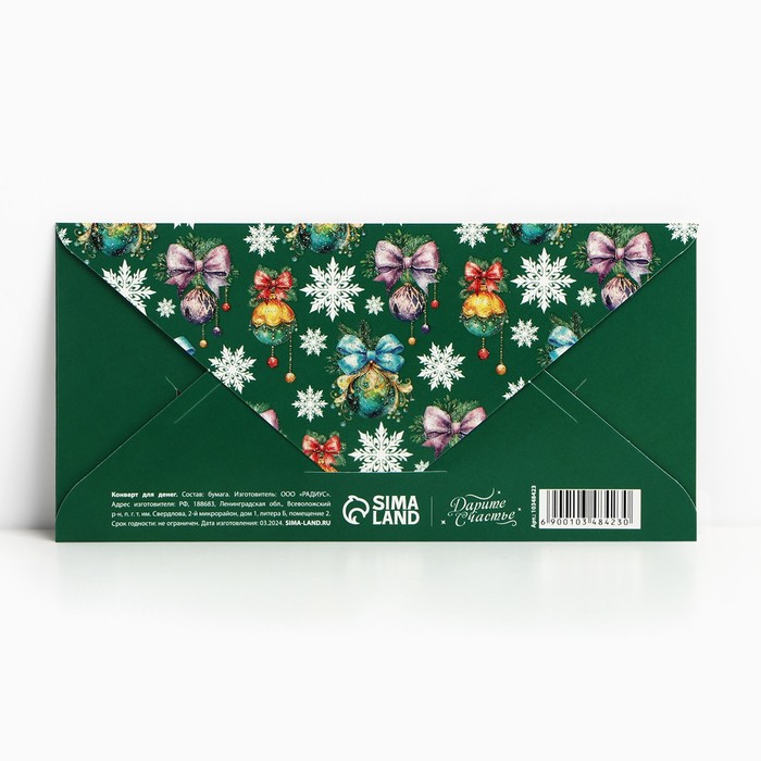 Конверт для денег «С Новым годом», глиттер, 16.5×8 см