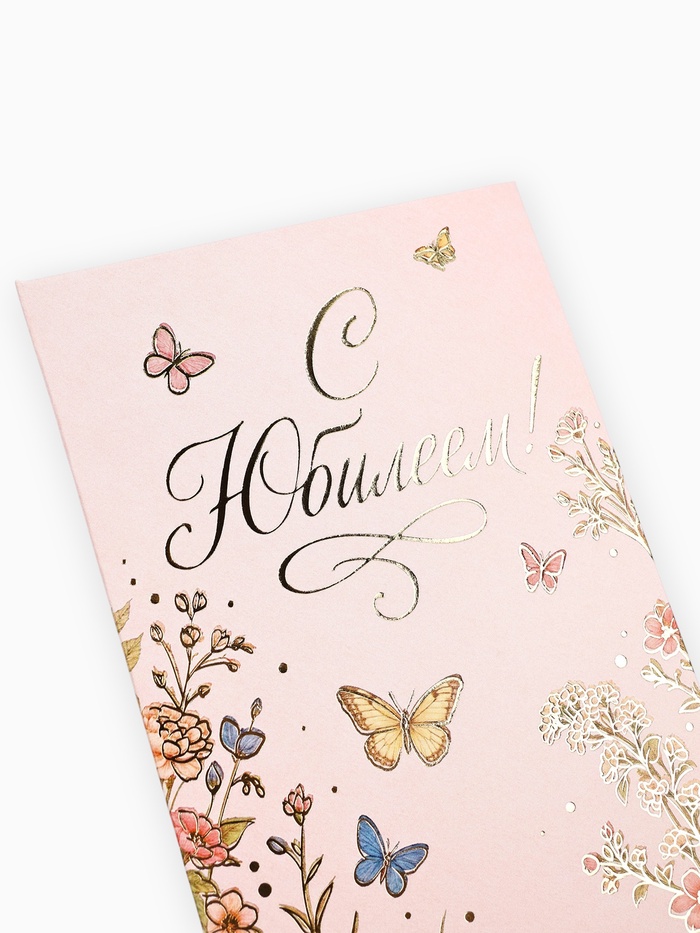 Конверт для денег «С Юбилеем!», цветы, тиснение, 16.5×8 см