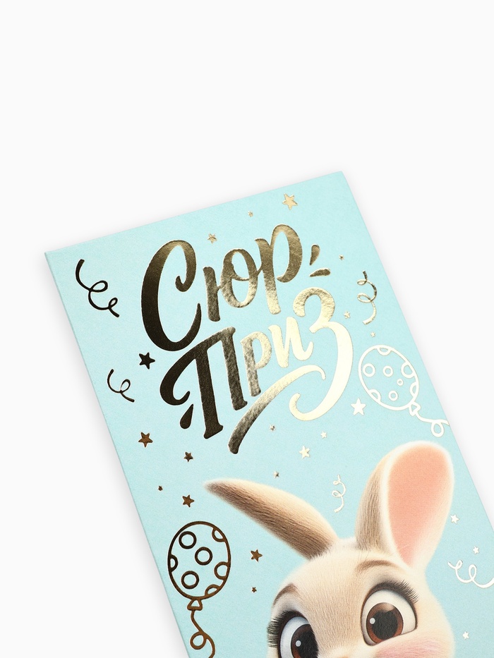 Конверт для денег «Сюрприз», зайчик, тиснение, 16.5 х 8 см