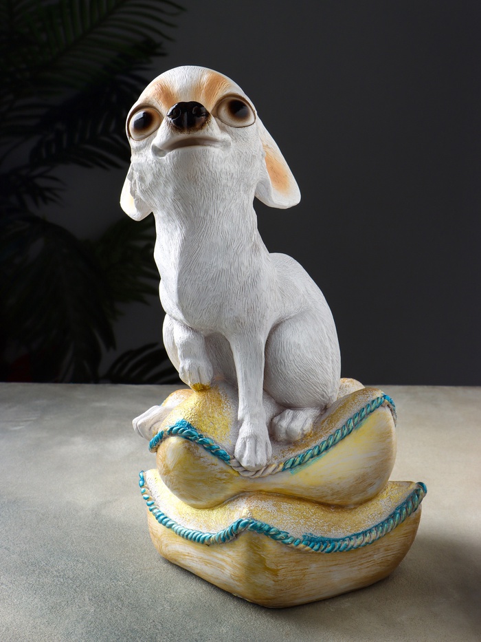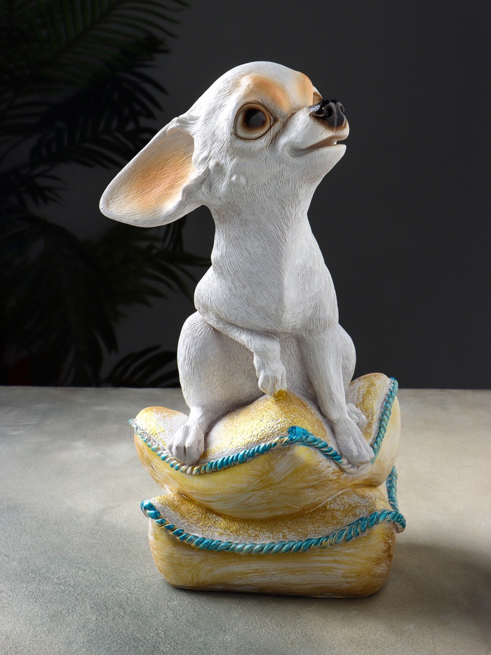 Превратите процесс накопления в настоящее удовольствие с этим очаровательным созданием. Копилка в виде чихуахуа, уютно устроившейся на подушке, станет не просто хранилищем для сбережений, а настоящим украшением интерьера и символом финансового благополучия.