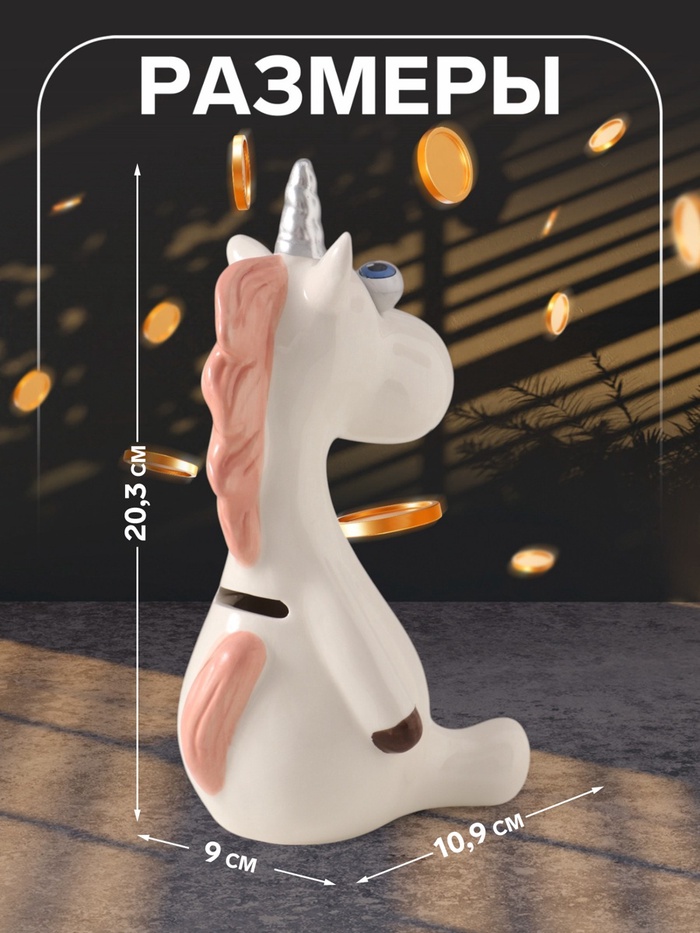Эта копилка идеально подойдет для детей и взрослых, кто любит мифических животных и хочет добавить нотку волшебства в свою повседневную жизнь. Благодаря своим размерам (9×10.9×20.3 см) она легко найдет место на полке или столе.