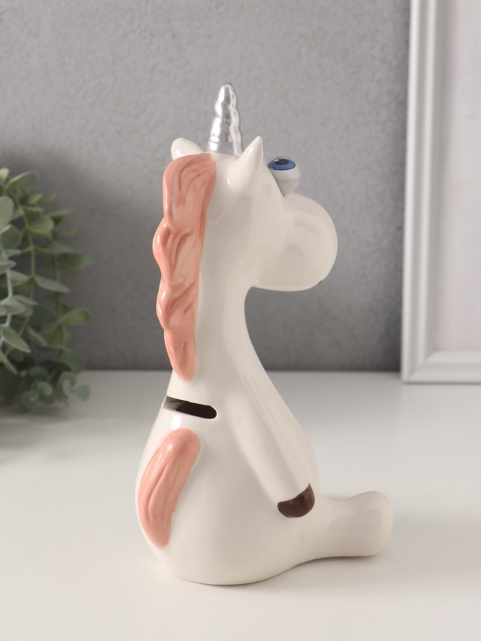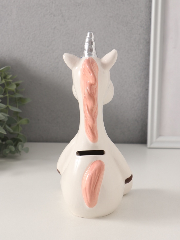 Ваш дом станет еще уютнее и веселее с этой очаровательной копилкой в виде единорога! Сделанная из высококачественной керамики и покрытая глазурью, она не только выполняет свою основную функцию, но и служит стильным украшением интерьера.