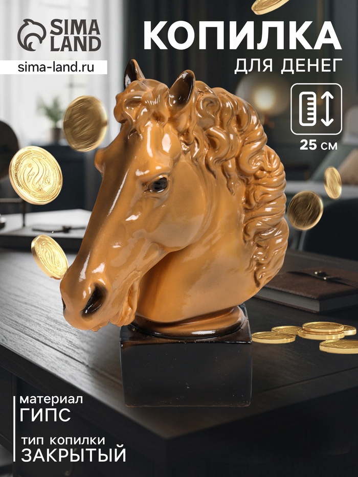 Представляем вашему вниманию уникальный предмет, который не только станет стильным акцентом в интерьере, но и поможет организовать ваши сбережения. Эта копилка выполнена в виде головы гнедой лошади — символа силы, свободы и мудрости. Она станет не просто функциональным предметом, но и источником вдохновения для достижения ваших финансовых целей.