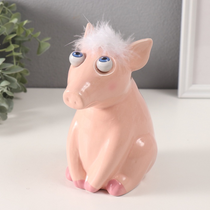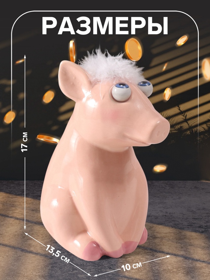 Представляем вам очаровательную копилку в виде милого поросёнка с пучеглазым дизайном. Эта керамическая копилка станет не только функциональным аксессуаром для хранения денег, но и ярким украшением вашего интерьера.