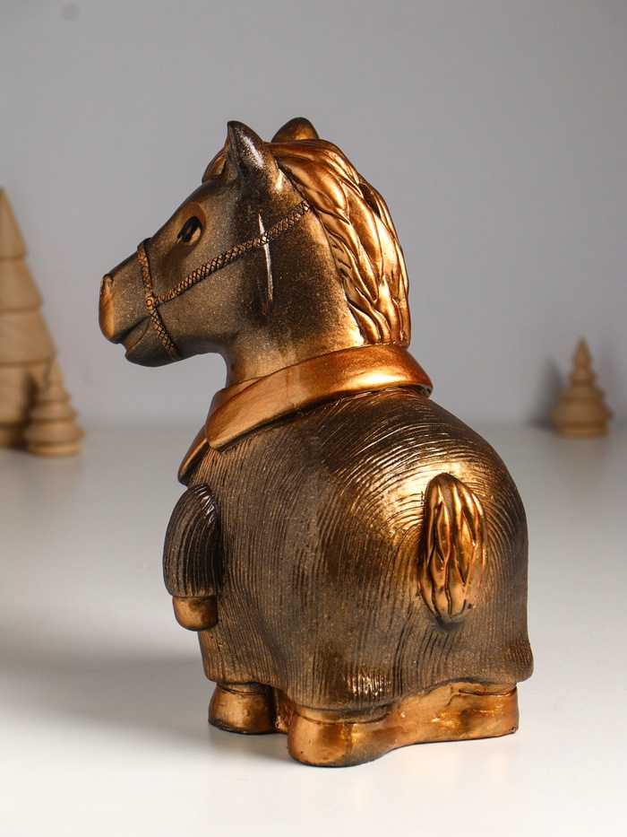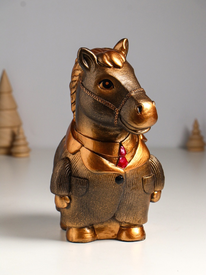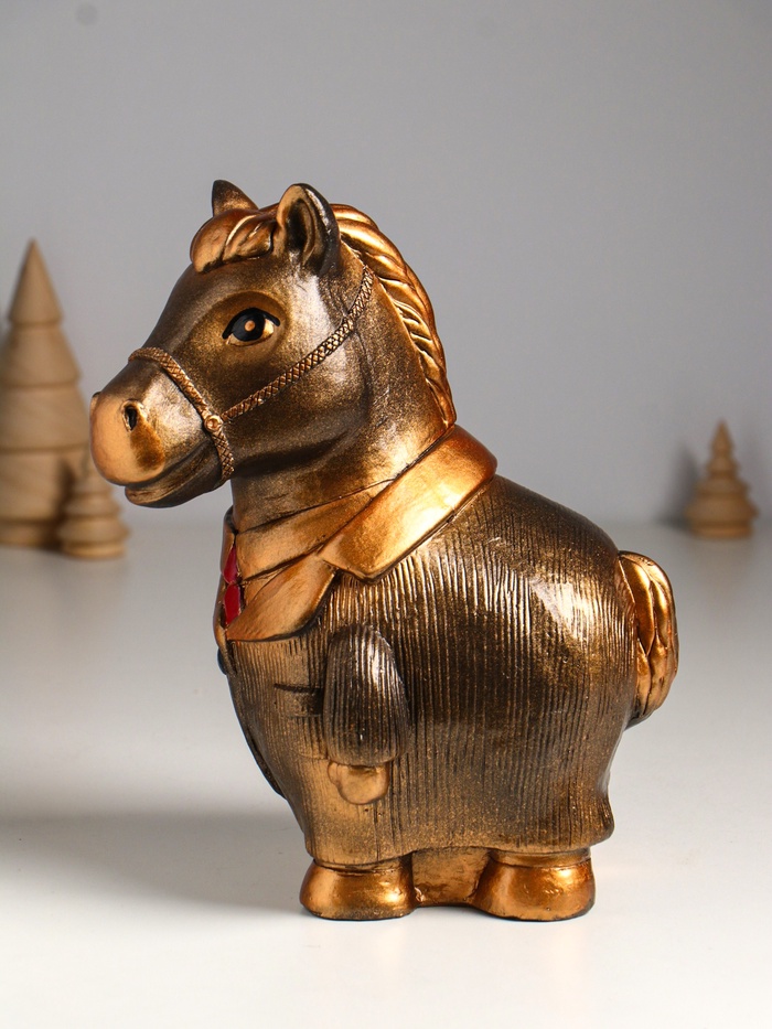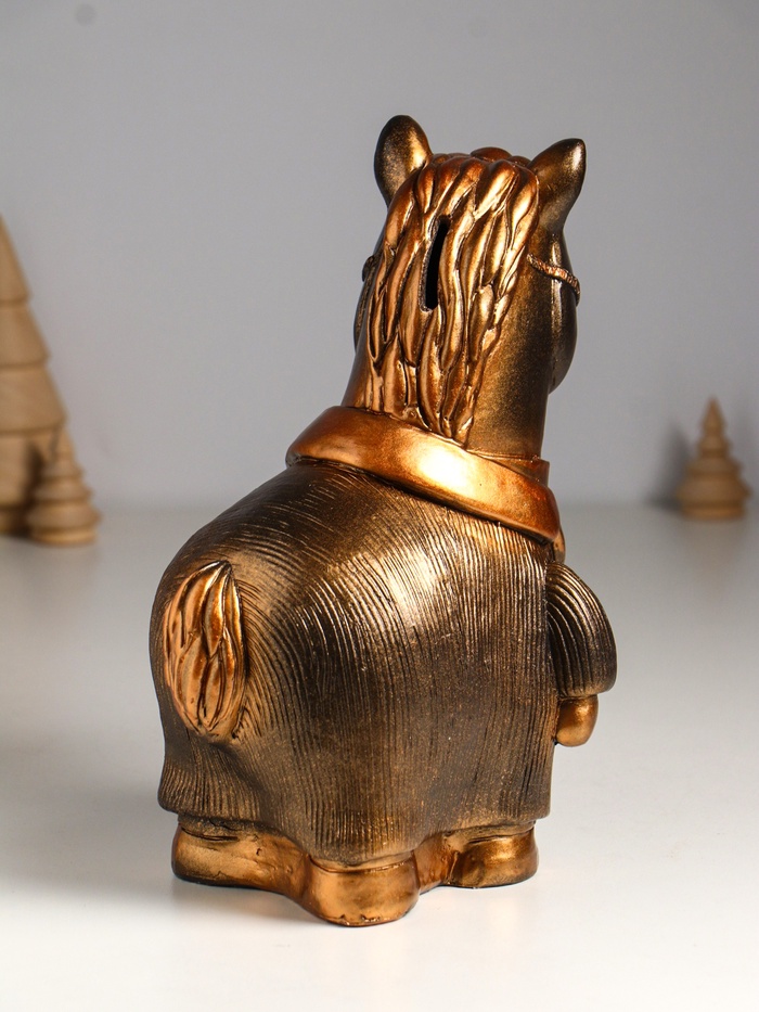 Эта бронзовая скульптура лошади — не просто копилка, а стильный аксессуар для интерьера. Она превращает процесс накопления в эстетический ритуал, напоминая о вашей финансовой цели своим солидным видом. Фигурная форма и закрытый тип конструкции подчеркивают её статусность.