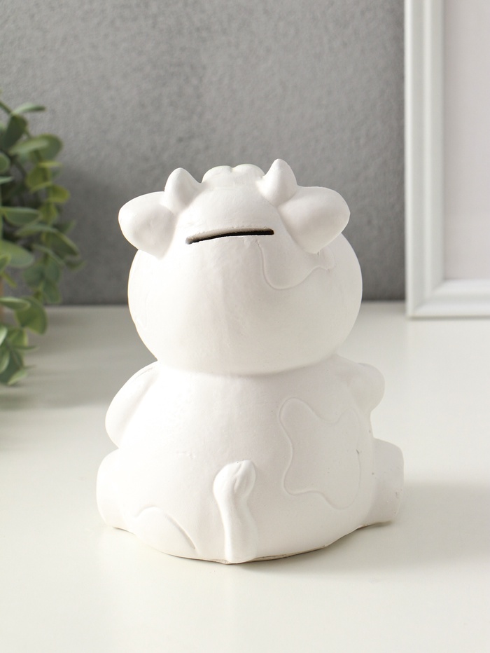 Эта гипсовая копилка в виде коровы станет символом вашего финансового благополучия и верным помощником в накоплениях. Классический белый цвет и лаконичная форма делают её стильным акцентом в интерьере, который несёт в себе добрую традицию — откладывать монетку на заветную мечту.