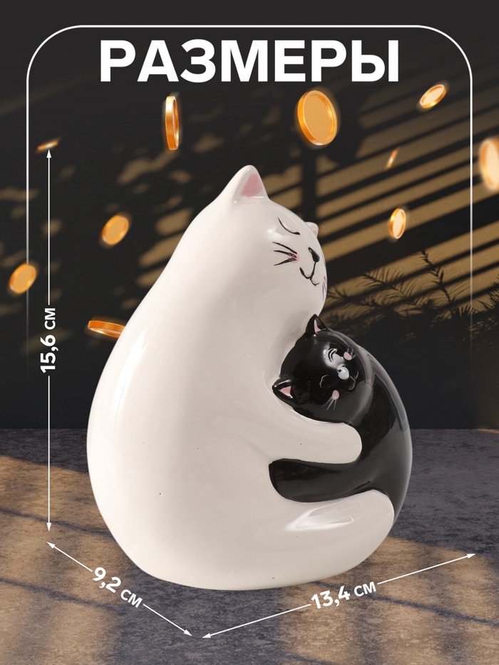 Копилка «Кошачьи объятия» — это милый и функциональный аксессуар, который станет отличным дополнением к вашему интерьеру. Изготовленная из керамики и покрытая глазурью, эта копилка не только поможет вам накопить деньги, но и украсит ваше пространство.