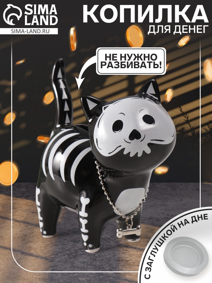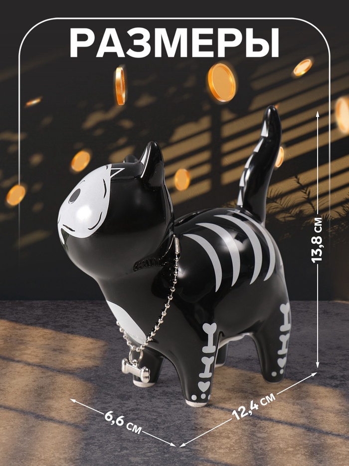 Керамическая копилка «Котик-скелет» станет оригинальным украшением вашего интерьера и отличным подарком для любителей необычных аксессуаров. Чёрный кот с глазурованным покрытием привлекает внимание и добавляет нотку мистики в любое пространство.