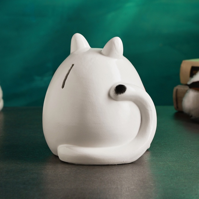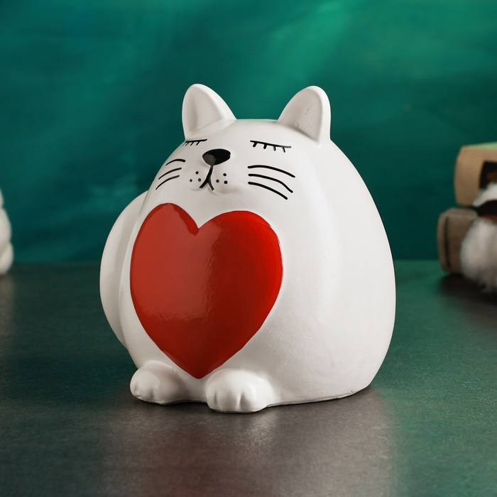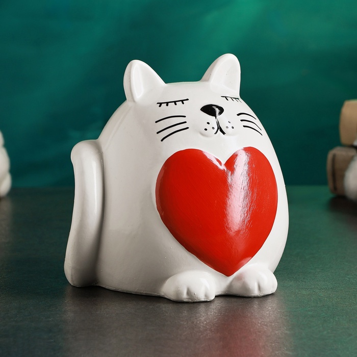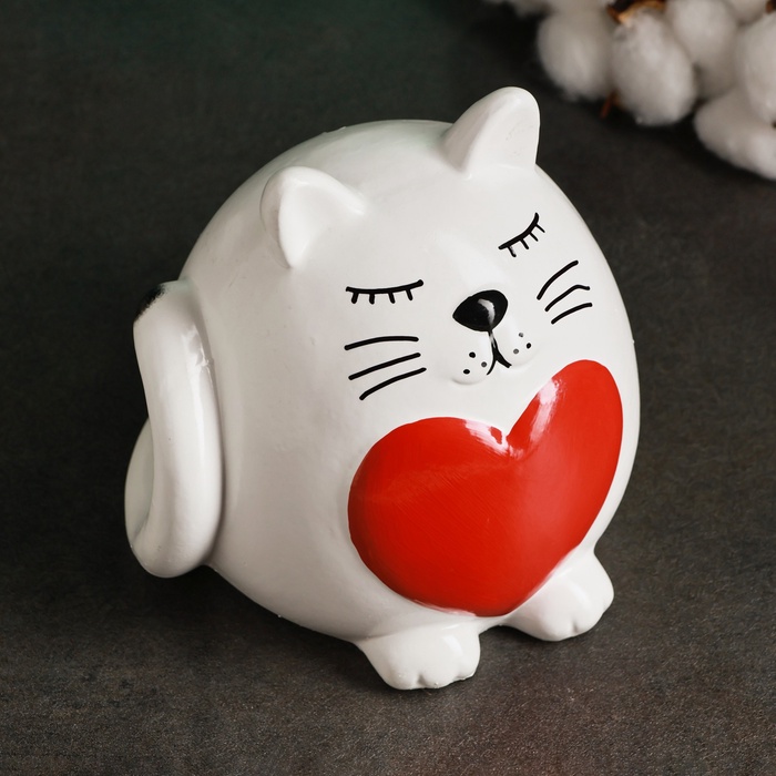 Копилка для денег «Круглый кот с сердцем», гипс, белый, 14 см