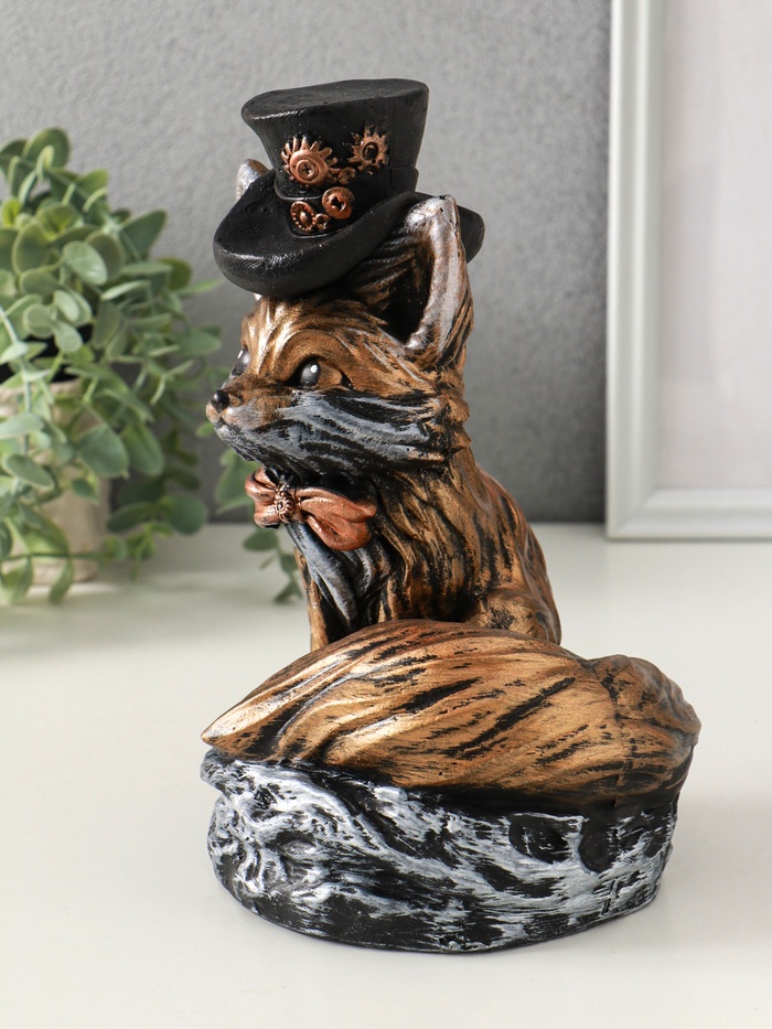Копилка для денег «Лиса в шляпе», гипс, 24×15 см, под бронзу с серебром