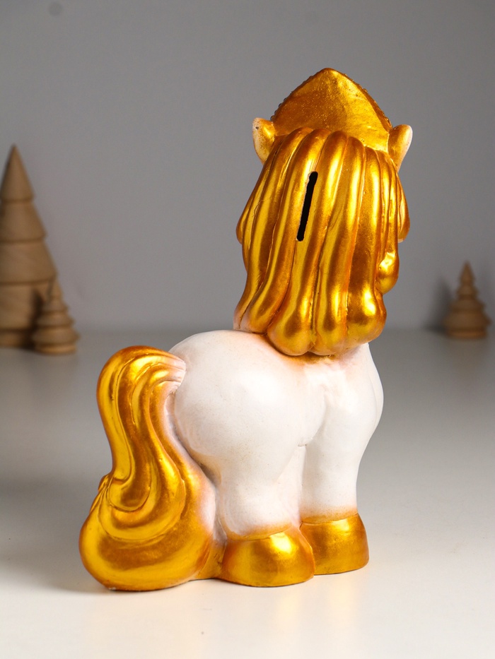 Эта белоснежная фигурная копилка с золотым узором станет элегантным хранителем ваших сбережений и сильным денежным талисманом. Изящная лошадь в кокошнике — это не просто сувенир, а значимый символ 2026 года, который принесёт в дом энергию успеха и процветания.