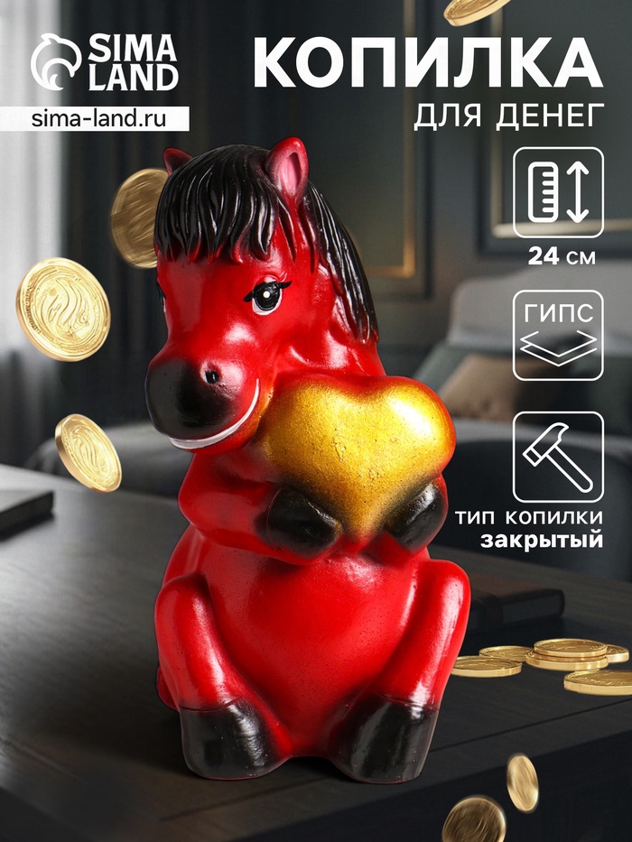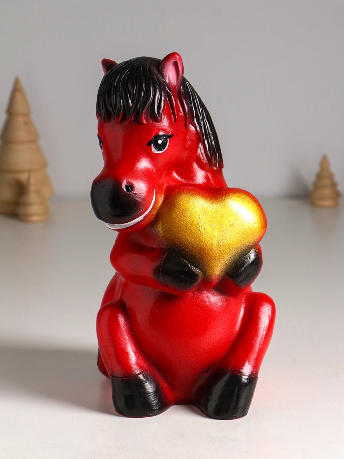 Эта фигурная копилка в виде коня станет сильным денежным талисманом и ярким акцентом в интерьере. Образ огненного скакуна с сердцем вдохновляет на достижение целей, превращая каждое пополнение в шаг к мечте.