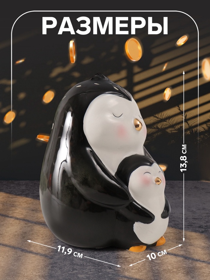 Копилка «Пингвин с малышом» — это милый и функциональный аксессуар, который станет отличным дополнением к вашему интерьеру. Изготовленная из керамики и покрытая глазурью, эта копилка не только поможет вам накопить деньги, но и украсит ваше пространство.