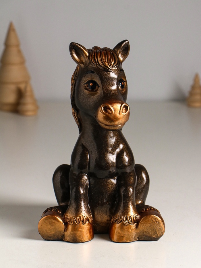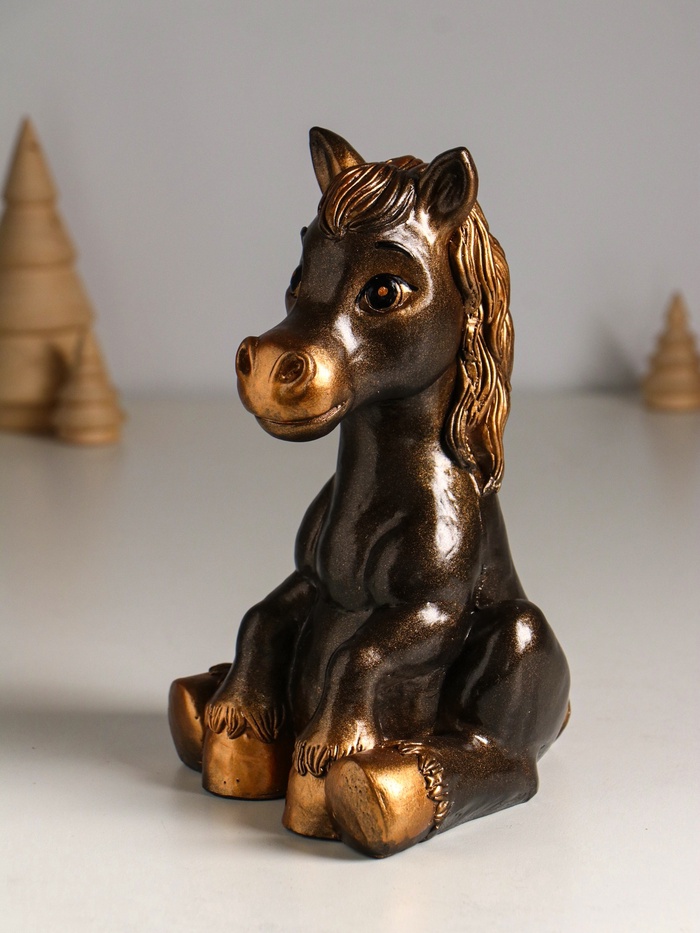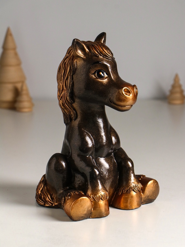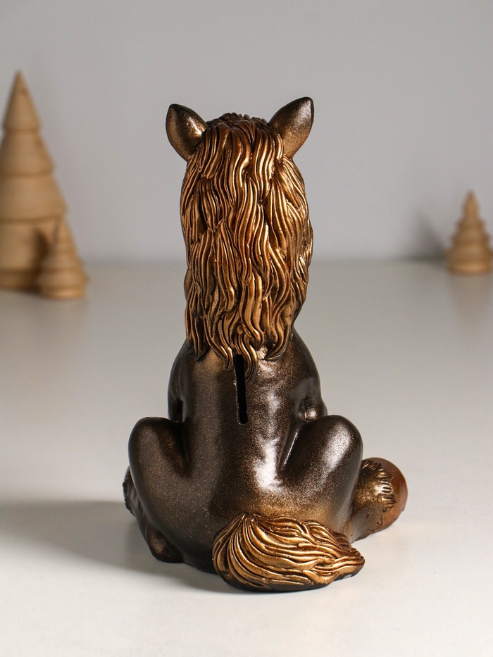 Эта копилка в виде лошади — не просто сувенир, а верный талисман для ваших финансов. Солидная гипсовая фигура станет значимым подарком на Новый 2026 год, день рождения или для создания личного денежного ритуала. Закрытый тип конструкции помогает откладывать деньги осознанно, превращая каждую монету в шаг к большой цели.