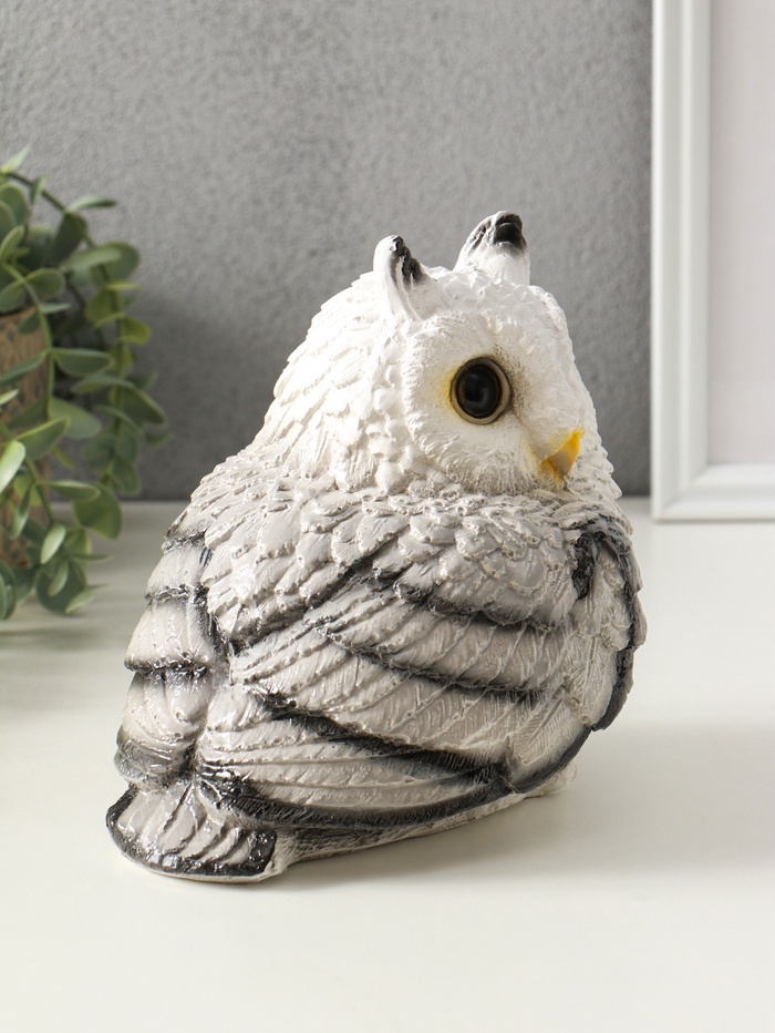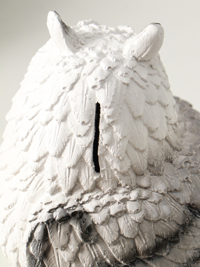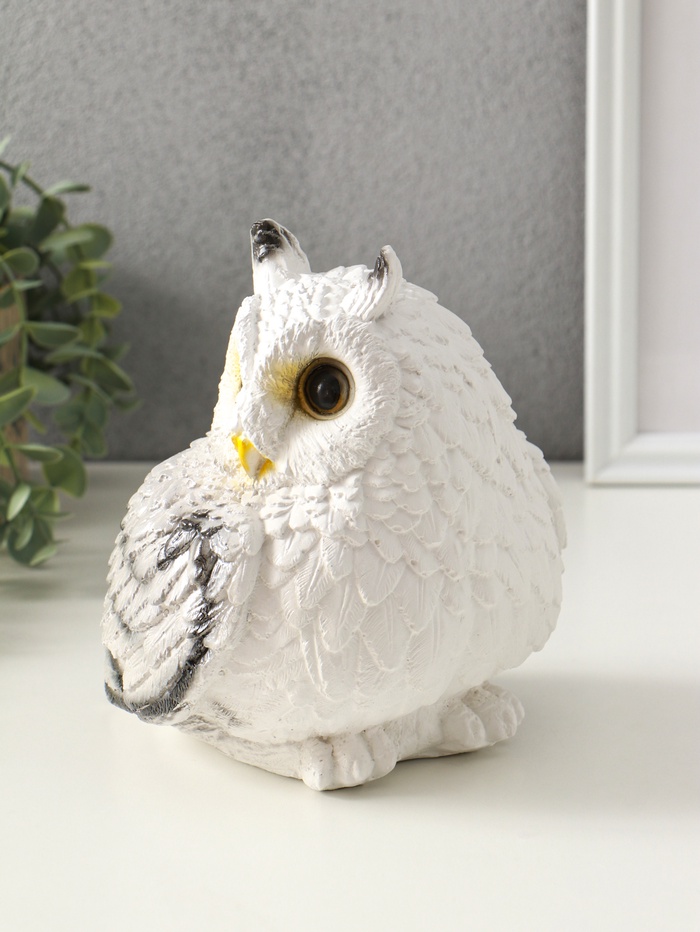 Эта гипсовая копилка в виде совы — не просто сувенир, а верный помощник в формировании полезной финансовой привычки. Закрытый тип учит терпению и целеустремлённости, превращая накопление в осознанный ритуал. Изящная белая сова с выразительным силуэтом станет символом мудрости и заботы о будущем в интерьере детской комнаты, спальни или рабочего кабинета.