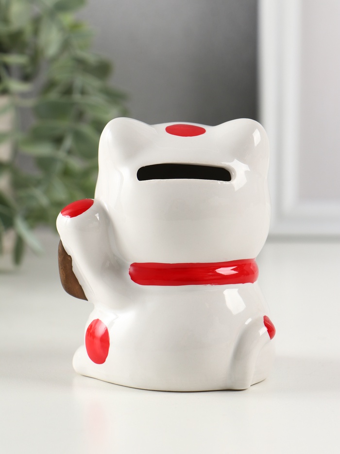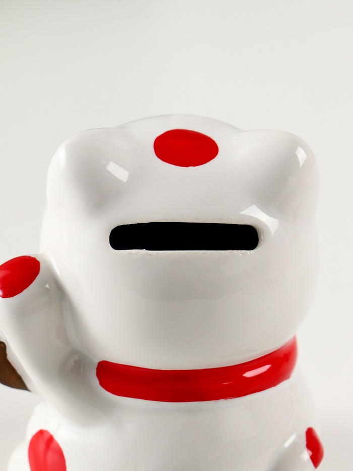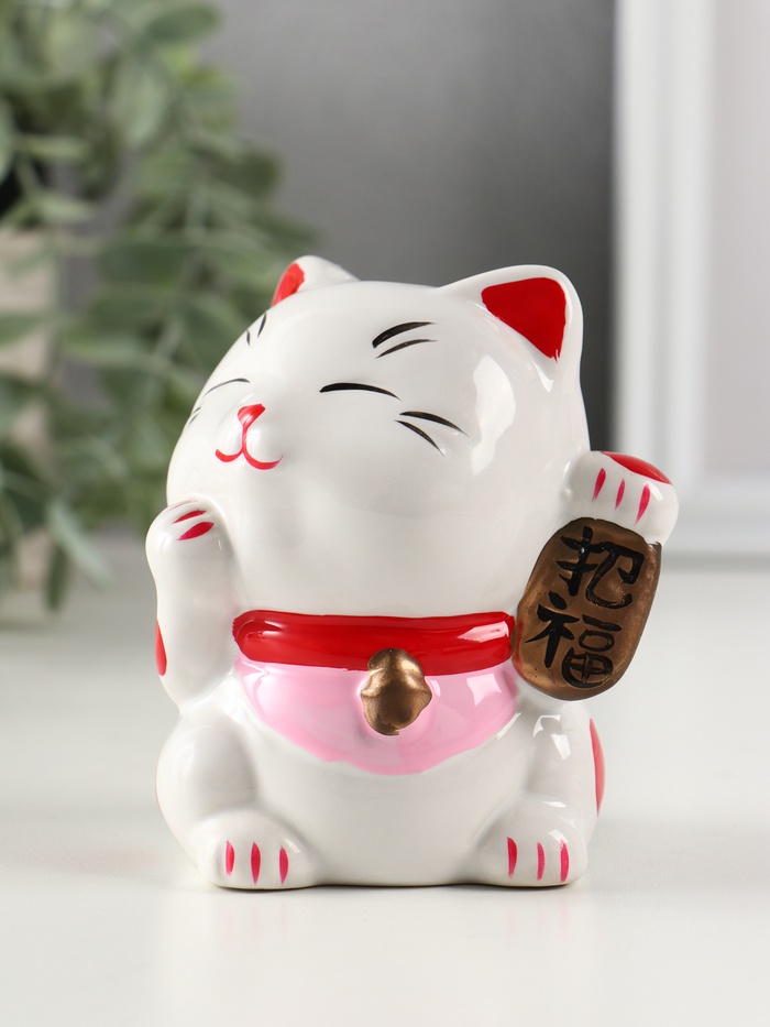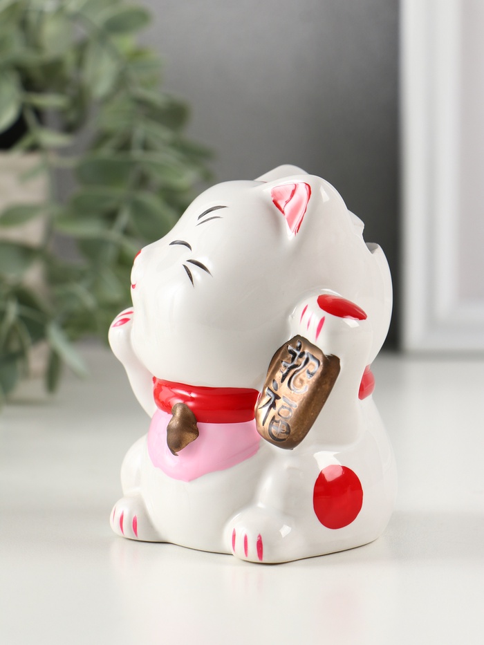Копилка керамика "Манэки-нэко - иероглиф удача" розовый 7,2х8,3х10 см