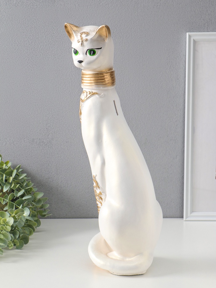Копилка "Кошка Маркиза с обручем" белая, 48х18х15 см
