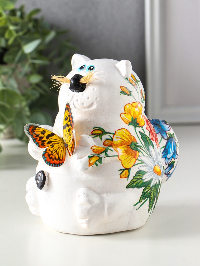 Копилка "Кот с букетом" 13,5х11х13,5 см