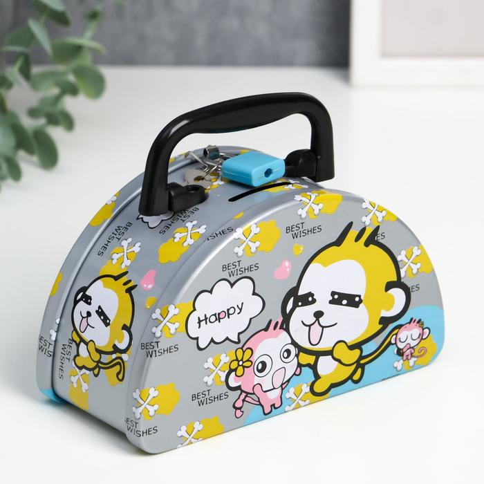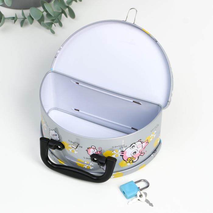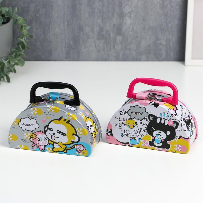 Копилка металл "Полуовал и зверушки" МИКС 16х9,2х7,3 см