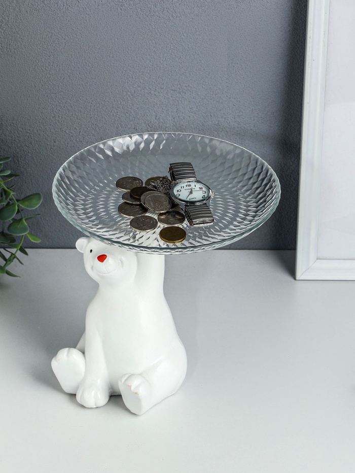 Копилка полистоун с подставкой для мелочей "Мишка" 20х18 см