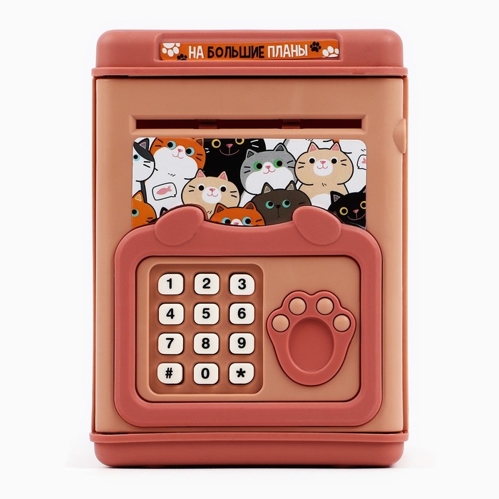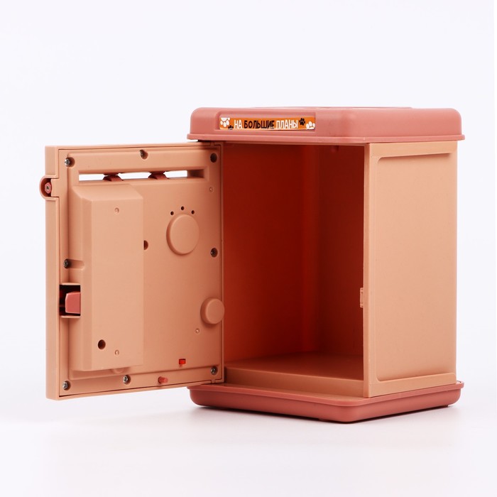 Электронная копилка-сейф для денег работает от батареек, принимает монеты и бумажные купюры. Уникальная музыкальная копилка - это копия сейфа с кодовым замком и электронным купюроприемником, как в банкомате, можно закидывать монеты или же вставлять купюры. Открыть может только человек, который знает пин-код сейфа. Имеет музыкальное сопровождение. По умолчанию в копилке установлен ПИН код: "0000". Для смены ПИН кода необходимо открыть дверцу вводом кода 0000, дождаться, пока светодиод погаснет, потом нажать и удерживать кнопку * 10 секунд, далее ввести новый 4-значный код и нажать #, после чего отпустить кнопку *. Нужно сразу проверить, открывается ли копилка-сейф с новым кодом.Если купюры плохо входят или электронный замок не работает, нужно поменять батарейки, желательно использовать батарейки высокого качества (3 батарейки типа АА).