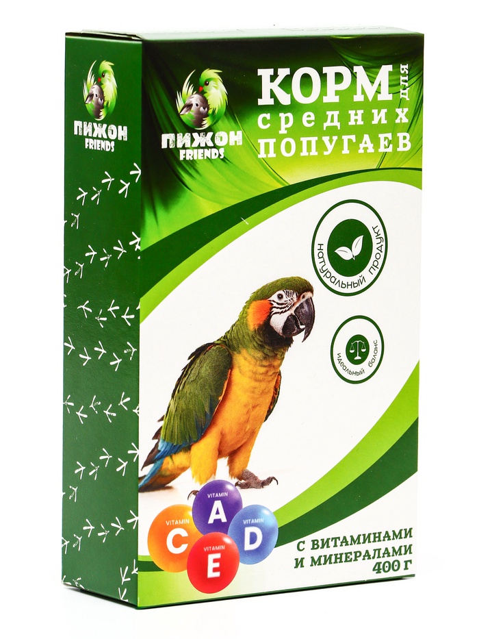 Корм "Пижон" для средних попугаев, с витаминами и минералами