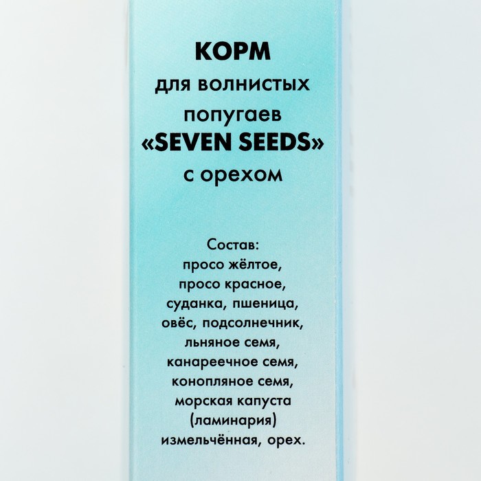 Состав: Просо жёлтое, просо красное, рапс, канареечное семя, льняное семя, конопляное семя, овёс, пшеница, подсолнечник, морская капуста, орех.