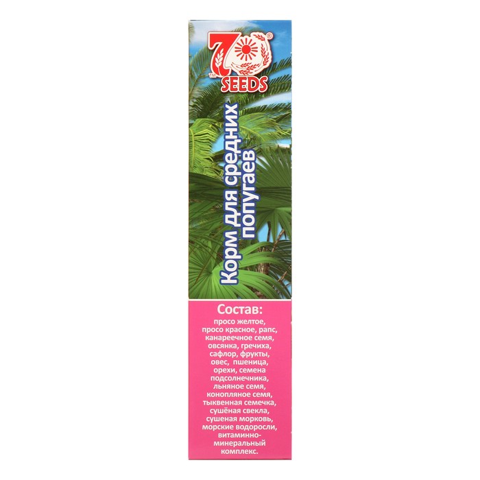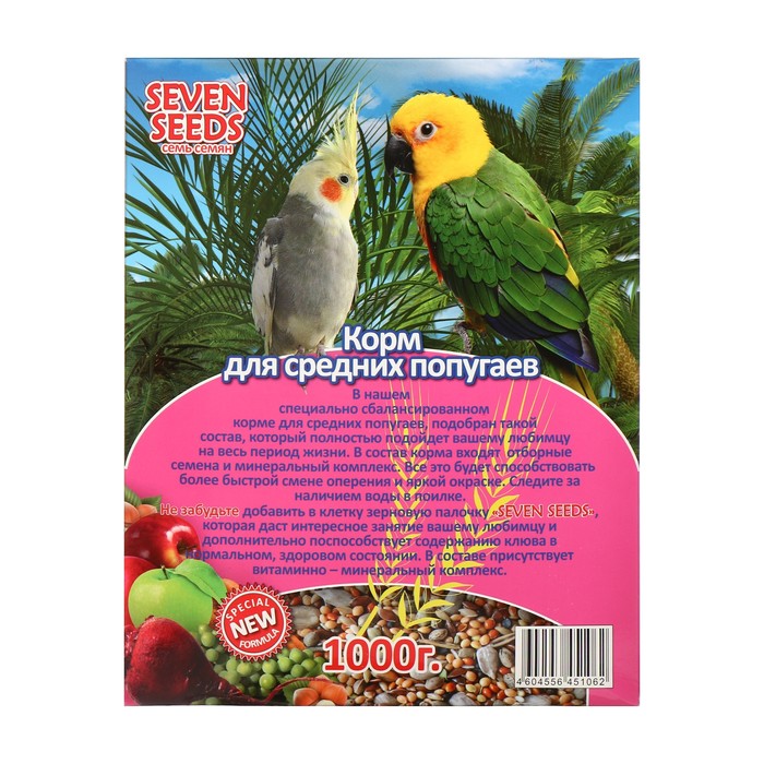В нашем специально сбалансированном корме для средних попугаев подобран такой состав, который полностью подойдет вашему любимцу на весь период жизни. В состав корма входят отборные семена и минеральный комплекс. Все это будет способствовать более быстрой смене оперения и яркой окраске.