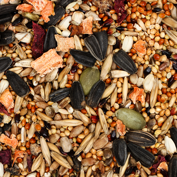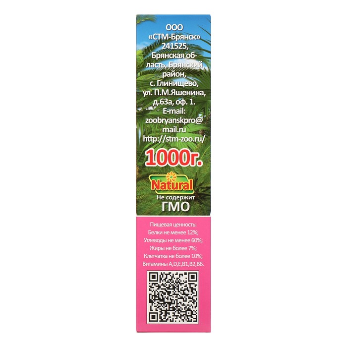 Состав: просо желтое, просо красное, рапс, канареечное семя, овсянка, гречиха, сафлор, фрукты, овес, пшеница, овес, семена подсолнечника, льняное семя, конопляное семя, тыквенная семечка, сушеная свекла, сушеная морковь, морские водоросли, витаминно-минеральный комплекс.