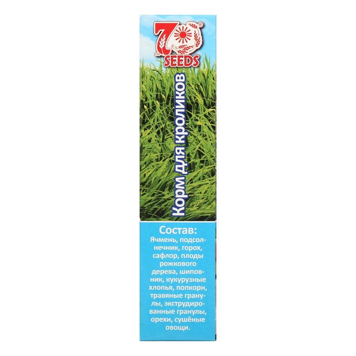 Состав: ячмень, подсолнечник, горох, сафлор, шиповник, кукурузные хлопья, попкорн, травяные гранулы, экструдированные гранулы, орехи, сушёные овощи.