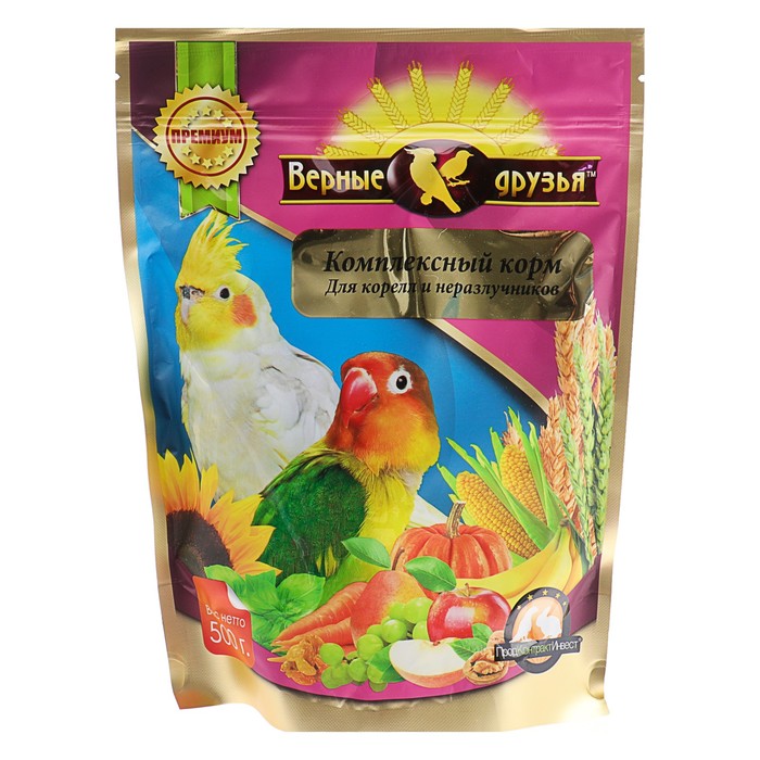 Корм "Верные друзья" для карелл и неразлучников, овощи и фрукты - это смесь отборных зерен и семян травы, богатых питательными веществами и выращенных на плодородных почвах экологически чистых регионов.