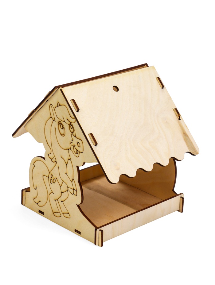 Кормушка для птиц дерево 18 x 16 x 15 см, Разобранная. "Лошадь" Символ Года