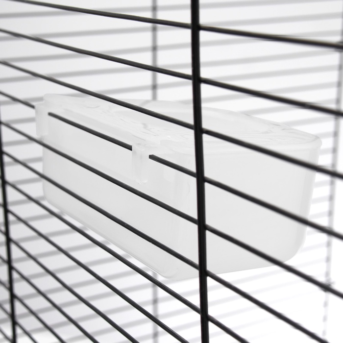 В данную кормушку можно засыпать корм или налить воду на Ваше усмотрение. Изделие легко крепится при помощи двух пластиковых крючков в любом месте клетки. Ёмкость идеально подойдет для средних и маленьких птиц: попугайчиков, амадинов, канареек, неразлучников, волнистиков.