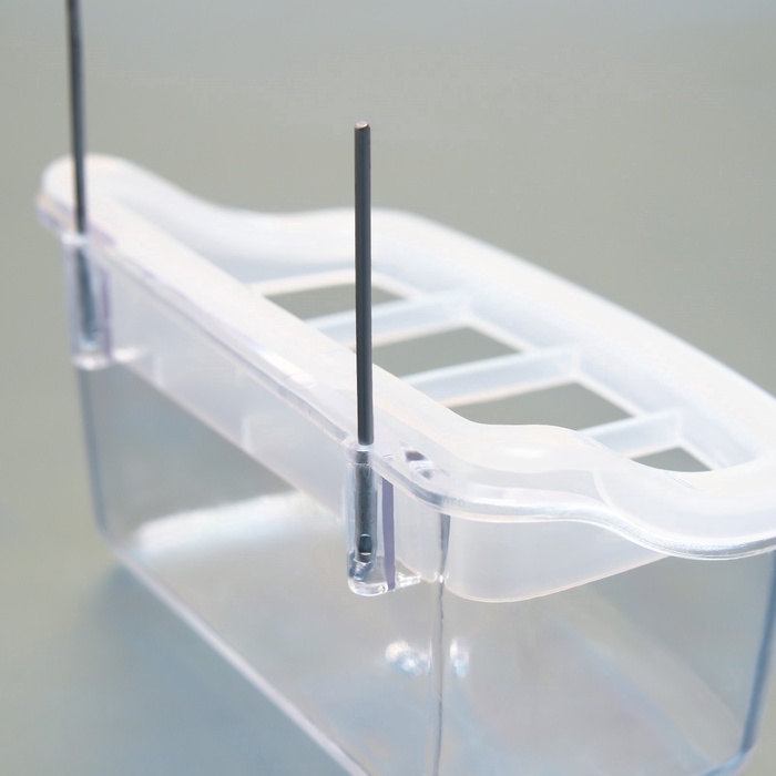 Легкость установки: Кормушка легко крепится к стенкам клетки или вольера, благодаря простому механизму крепления. Это позволяет вам устанавливать или снимать её без лишних усилий.