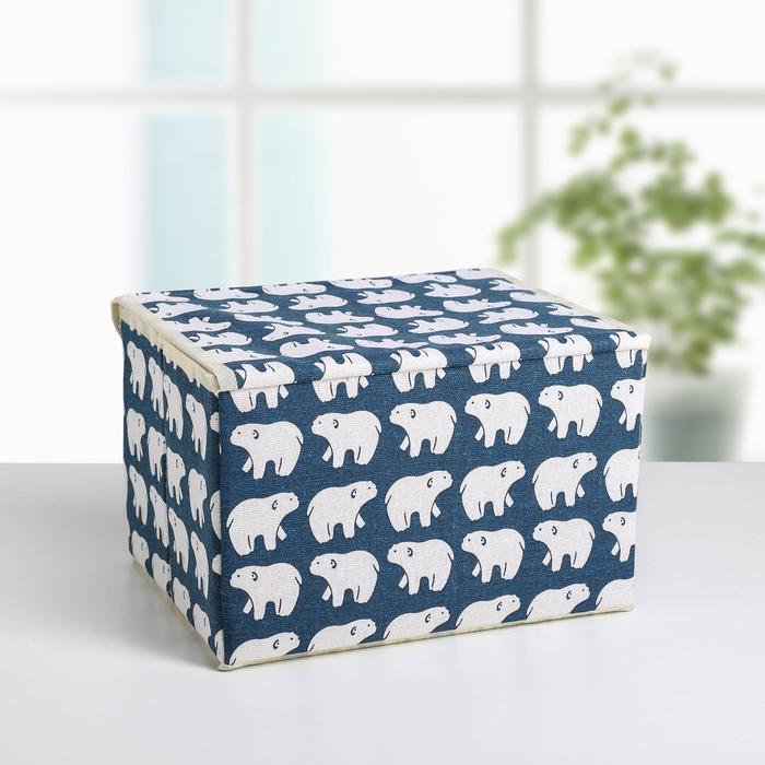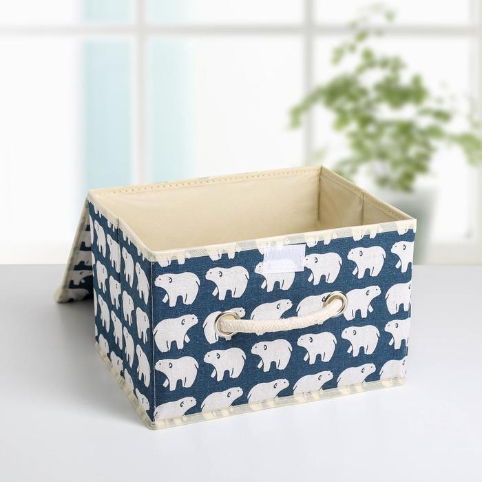 Короб стеллажный для хранения с крышкой «Северные мишки», 25×20×17 см, синий
