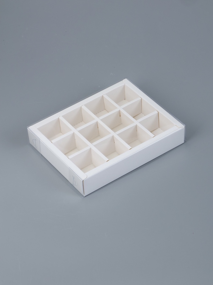 Коробка для 12 конфет, 19 х 15 х 3,5 см Белая с прозрачной крышкой