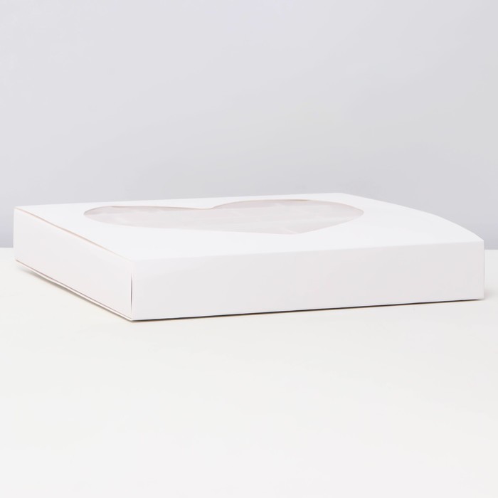 Коробка для 25 конфет, белое сердце, 22×22×3.5 см