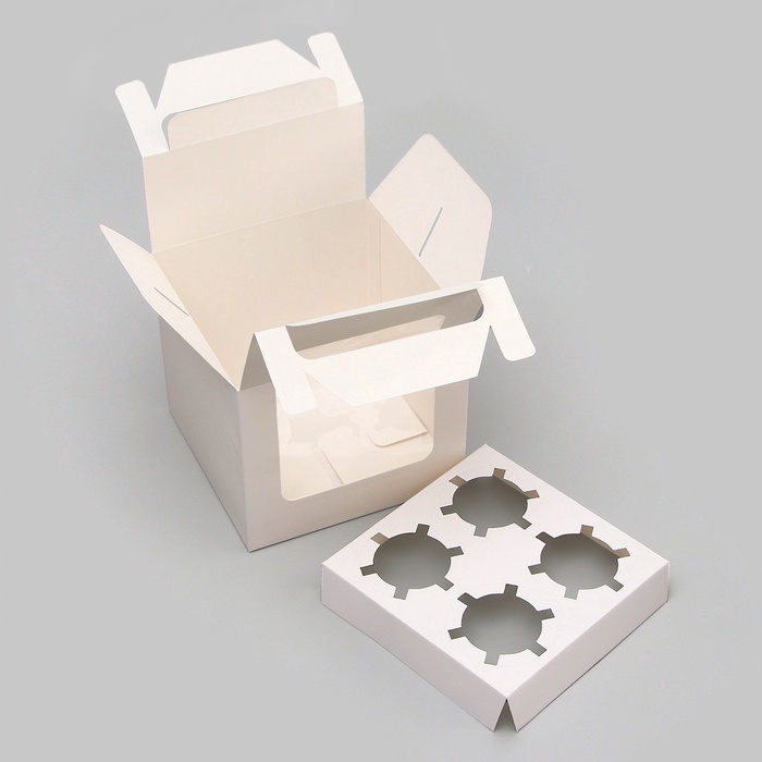 - Рассчитана на 4 капкейка - коробка оснащена специальными отделениями под каждый капкейк;