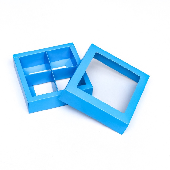 Лаконичный изыск в нежных тонах! Голубая коробка для 4 конфет 12.5×12.5×3.5 см — это упаковка для небольшого, но значимого жеста. Её свежий цвет и аккуратные ячейки превращают несколько конфет в элегантный и продуманный комплимент.