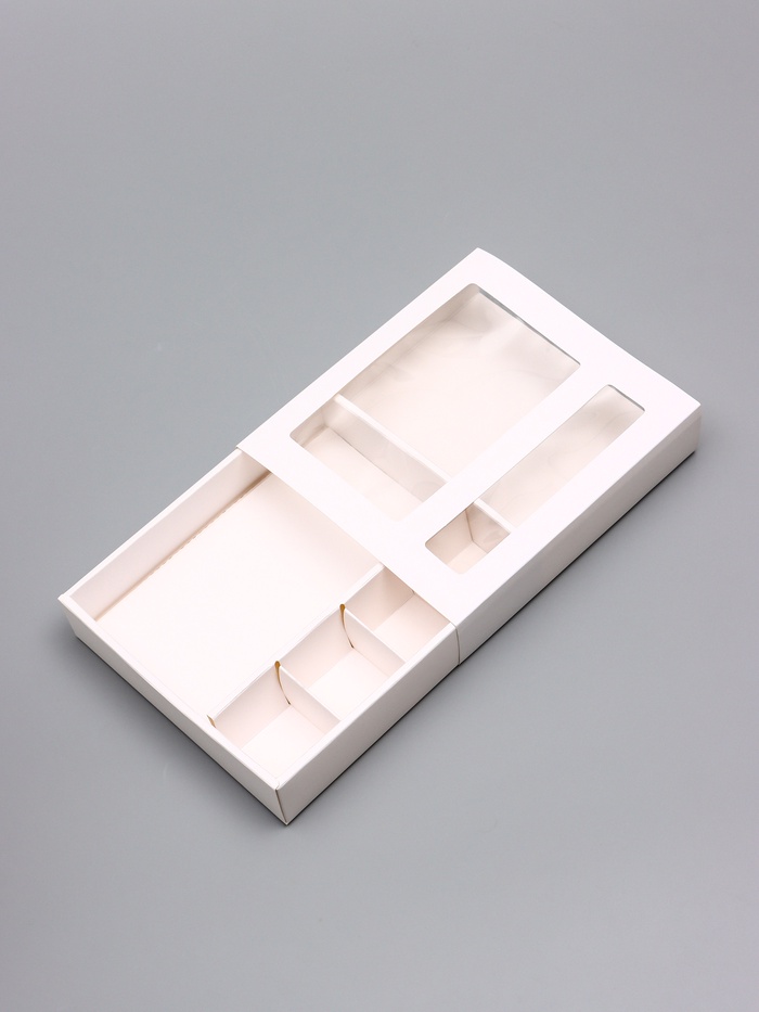 Элегантная упаковка для сладких сюрпризов! Коробка для конфет и шоколада — стильное решение для небольших кондитерских подарков. Четыре отдельные ячейки и место для шоколадки помогают красиво оформить сладкий презент.