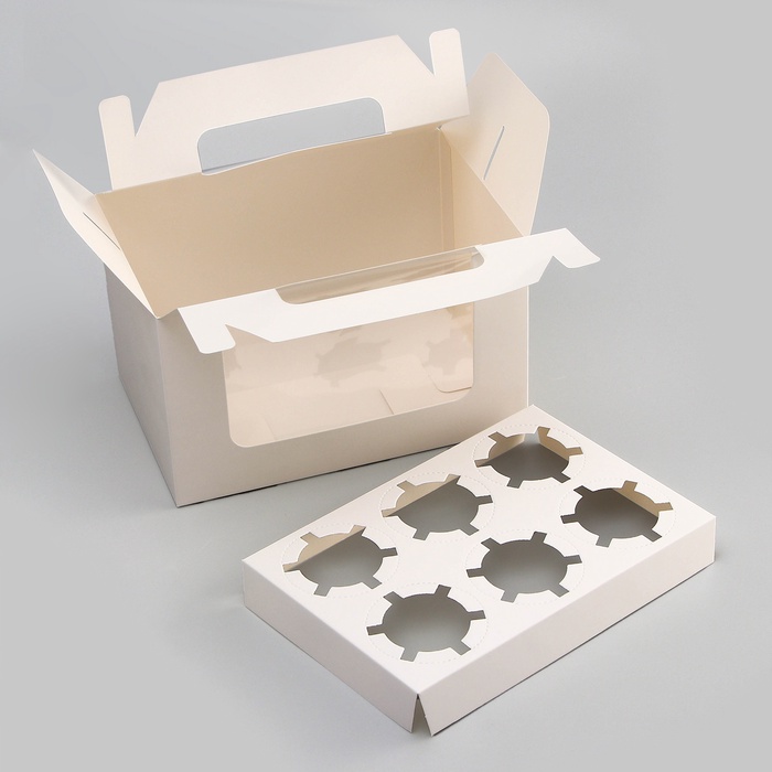 - Рассчитана на 6 капкейков - коробка оснащена специальными отделениями под каждый капкейк;