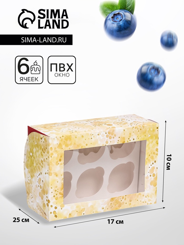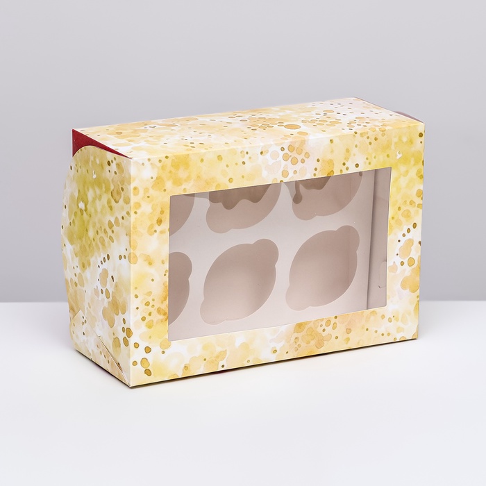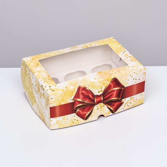 Коробка для 6 капкейков с окном, «Бант», 25×17×10 см