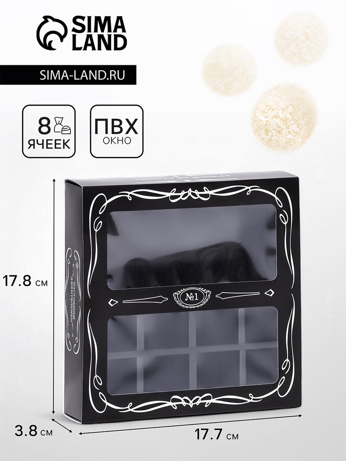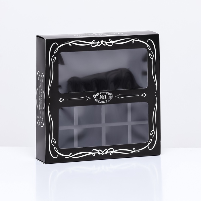 Представляем вам стильную и удобную коробку для упаковки сладостей, идеально подходящую для презентаций, подарков и продажи кондитерских изделий. Эта коробка рассчитана на 8 конфет и дополнительно включает место для небольшого шоколада, что делает её идеальным решением для создания вкусных и красивых наборов.