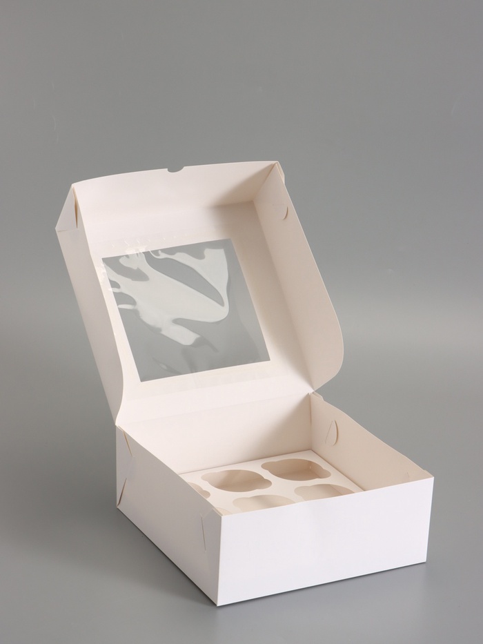 - Надёжная защита и визуальный контроль: Высокие борта (10 см) и плотный картон (250 г/м²) гарантируют, что даже капкейки с пышным кремом останутся в целости. Большое прозрачное окно даёт полный обзор на все девять десертов, демонстрируя их оформление.