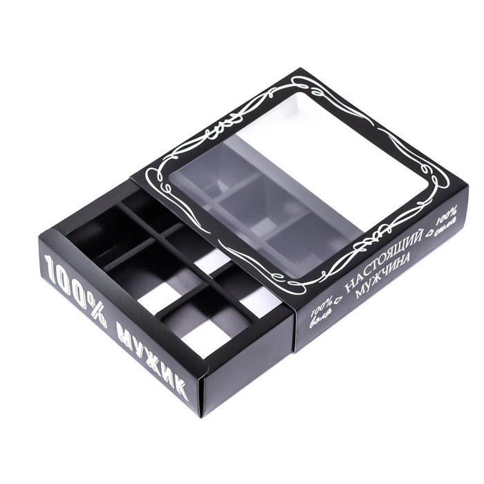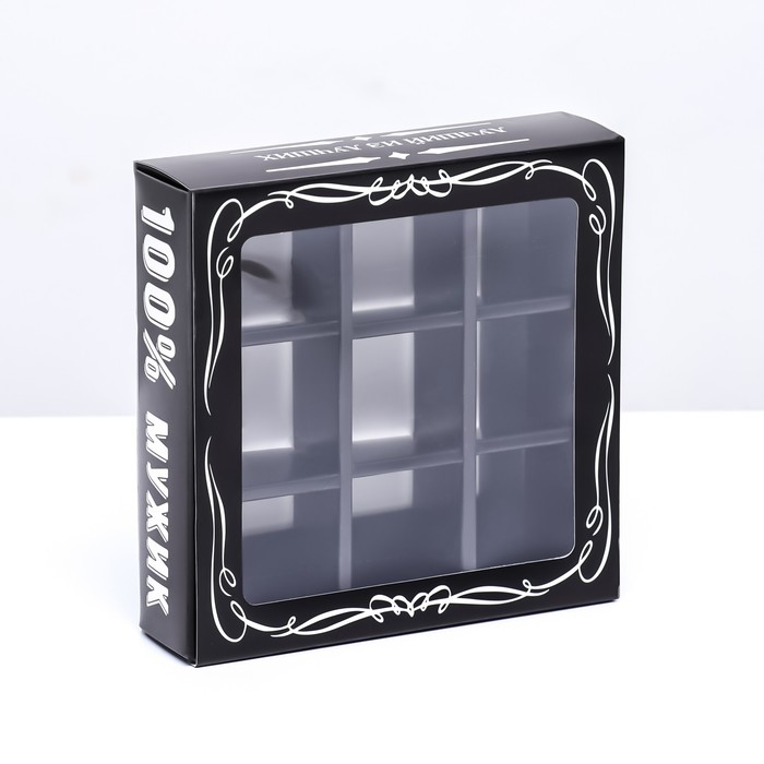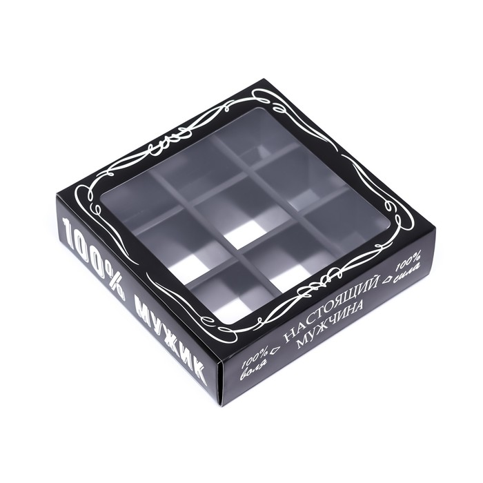 Коробка для 9 конфет с обечайкой, «Настоящий мужчина» 13.8×13.8×3.8 см