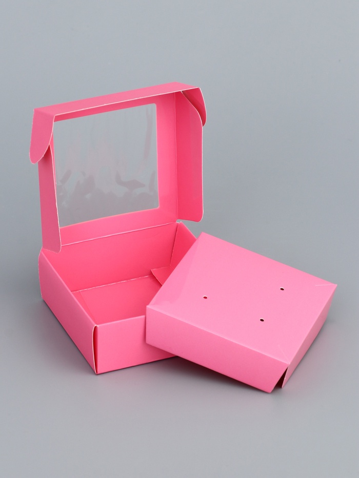 Коробка для бижутерии с PVC окном (розового цвета) 8x8x3 см