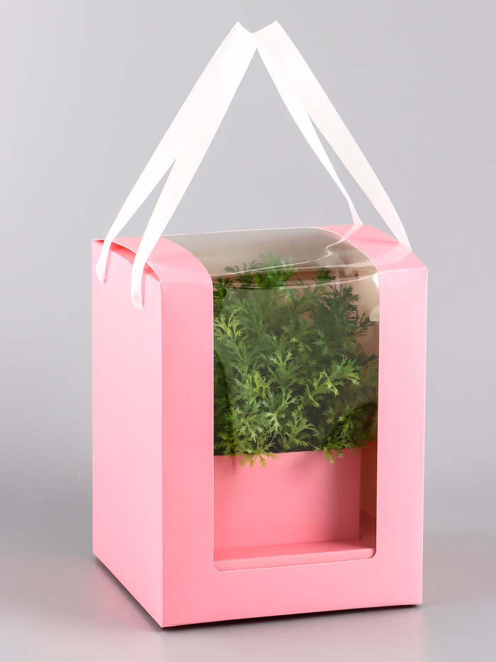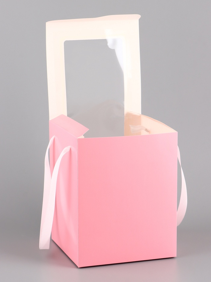 Розовая складная коробка для цветов — стильное и практичное решение для упаковки букетов или подарков. Её нежный цвет и лаконичный дизайн делают её идеальной для женских праздников, таких как 8 Марта или 14 Февраля. Прозрачное окошко добавляет изысканности, подчёркивая красоту содержимого.