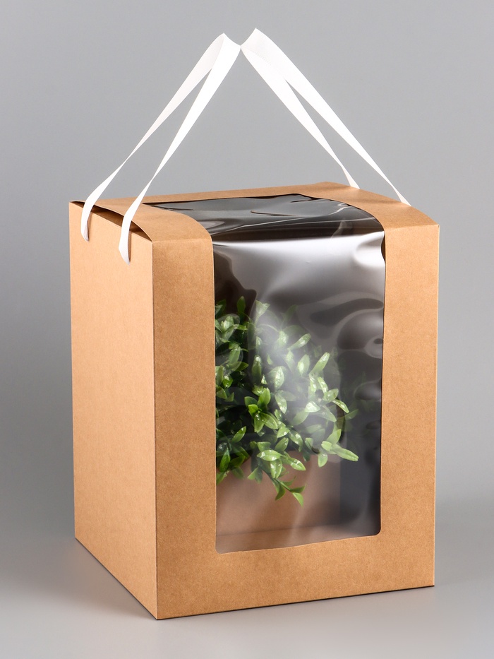 Крафт-коробка сочетает в себе эстетику и функциональность. Её универсальный дизайн делает её уместной на любом мероприятии, а прочные материалы гарантируют долговечность. Благодаря окошку букет выглядит ещё эффектнее, а складная конструкция позволяет использовать коробку многократно.