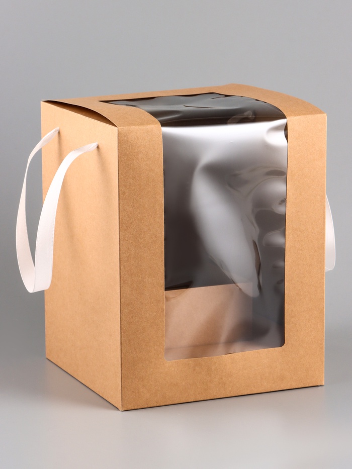 Крафт-коробка для цветов с окошком — стильное и практичное решение для оформления букетов. Её натуральный бежевый цвет и лаконичный дизайн подойдут для любого праздника: 14 Февраля, 8 Марта, дня рождения или юбилея. Коробка подчеркнёт красоту цветов и станет завершающим штрихом вашего подарка.