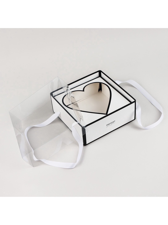 Коробка для цветов с фигурным вкладышем и пластиковой крышкой Present, 23.5 х 23.5 х 15 см